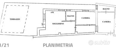 La proprietà dispone di un ingresso, un soggiorno con cucina a vista, due camere e doppi servizi.