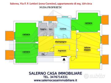 Zona Carmine, a breve distanza dal Bar delle Rose, NUDA PROPRIETA' di un appartamento composto da salone doppio, tre vani, cucina abitabile e due bagni.