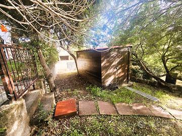 All'esterno, un ampio terrazzo panoramico rappresenta lo spazio perfetto per rilassarsi all'aperto, mentre il giardino piantumato, l'area barbecue e la casetta in legno adibita a ripostiglio completano la proprietà.