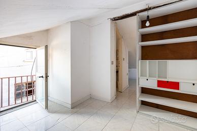 L' appartamento, di circa 90 mq netti, attualmente in buone condizioni e abitabile, si sviluppa sulla classica forma rettangolare col vantaggio di non avere rumorosi affacci sulla via principale, le stanze sono tutte finestrate grazie agli affacci diretti all'esterno o su ampi cavedi; la disposizione è: ingresso-soggiorno, cucina abitabile con doppio servizio/lavanderia, corridoio, bagno e tre camere da letto, l'ultima delle quali dotata di un soppalco riservato.