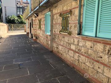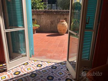 In zona Poeti , si propone appartamento in villa, progettata dall'architetto Ridolfi, posto al piano terra con ampio spazio esterno e ingresso indipendente carrabile. La casa è così composta: ingresso , ampio salone con uscita sul giardino, cucina abitale con camino e annessa zona pranzo , camera matrimoniale con bagno e cabina armadio, camera singola con bagno. Gli arredi di prestigio sono compresi nel prezzo. I pavimenti , come i camini sono maiolicati con mattonelle del famoso artista Capogrossi. Annesso all'abitazione, vi è un grande vano con camino, riscaldamento e finestra, attualmente adibito a garage, dall'esterno si accede ad un'ampia taverna , anch'essa con camino e riscaldamento. La zona, il progetto architettonico, le rifiniture e lo spazio esterno , fanno di questa proprietà un pezzo unico e prestigioso. Per info Maria Teresa