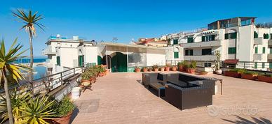 Proponiamo in vendita un raffinato appartamento con ingresso indipendente, impreziosito da un enorme terrazzo con vista mare mozzafiato L'abitazione, realizzata con materiali di pregio, si sviluppa in ambienti ampi e luminosi ed è così composta: - Salone triplo - cucina - 2 camere da letto - 2 bagni - Ampio terrazzo panoramico di 150 mq Completano la proprietà: -Box auto di circa 60 mq - Posto auto scoperto - cantina Trattativa riservata Per info e visite: Mimmo Pisapia