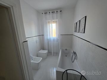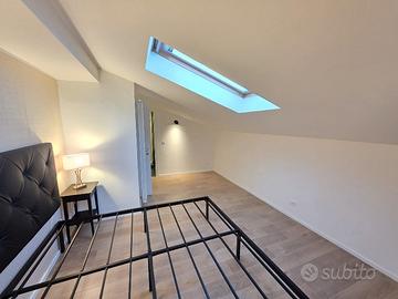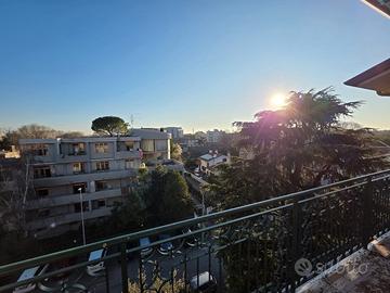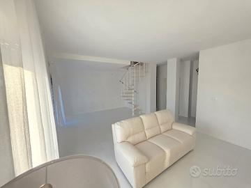 Proponiamo In zona centrale e servita un luminoso appartamento al quinto ed ultimo piano servito da ascensore completamente ristrutturato disposto su due livelli così composto: nel primo livello da ingresso, grande salone, cucina a vista con uscita nel terrazzo, camera matrimoniale, bagno completo e ripostiglio; al secondo livello da altre due stanze e secondo bagno. Inoltre garage doppio al piano terra. Arredato come da foto. Ottima esposizione con vista aperta! APE CL. "E".