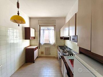 Abitazione composta da spazioso ingresso, salone con terrazza esposta ad ovest, cucina abitabile, stanza singola/studio, bagno finestrato, disimpegno, ripostiglio, tre stanze da letto e secondo bagno finestrato. Completa la proprietà un'ampia cantina.