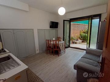 Zona semicentrale, nei pressi di via Michelangelo proponiamo in locazione solo a referenziati, appartamento arredato, sito al piano terra e composto da soggiorno con angolo cottura, camera, cameretta, disimpegno e bagno finestrato con doccia. Completo di una corte esclusiva di circa 60 mq, in parte pavimentata, in parte piantumata. L'immobile è dotato di impianto di riscaldamento centralizzato contabilizzato e di aria condizionata. Classe energetica in definizione.