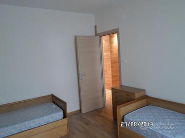 Appartamento con tre posti letto con una camera doppia una camera singola bagno piccola zona giorno e grande terrazzo posto auto sotto casa per 6 mesi all'anno . Affittasi esclusivamente a studenti con garanti . Canone mensile 780 euro escluso spese condominiali riscaldamento e utenze da volturare. Contratto transitorio con due mensilità di caparra.