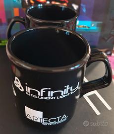 02 Tazze in ceramica nera con logo Showtec e sito web I Loghi sono: Showtec, DAP AUDIO, DMT, Infinity, ARTecta Le tazze sono uguali e preferisco la vendita in coppia