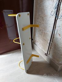 N° 06 mensole in legno massiccio + archetti in ferro+ perni di fissaggio, lavorate artigianalmente, colore bianco e giallo. Misure: 98,5cm x 30,5cm circa Ritiro in zona.