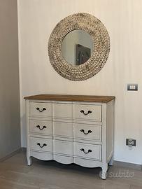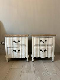 Dimensioni cassettiera: 110x45x90 cm Dimensioni comodini: 50x55x35 cm Condizioni ottime, nessun graffio o imperfezioni, tenuti con cura. Solo ritiro di persona a carico dell'acquirente, zona Piazza Bologna, Roma.