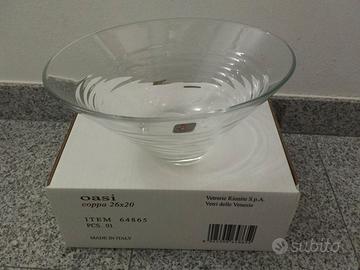 Vendo nuova, nella sua scatola : 1 Coppa Oasi Vetri delle Venezie. Lunghezza 26xLarghezza 20x H. 11,50cm. Vetro in morbide linee ondulate che rivestono la superficie. Prezzo 15 euro, spese di spedizione escluse.