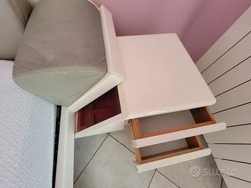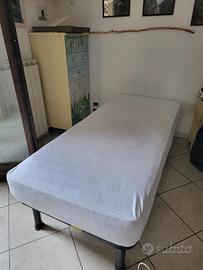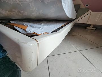 1 letto matrimoniale con struttura con comodini integrati e materasso in condizioni discrete (ha una riparazione con staffa a L sula struttura e il cuscini sul retro avrebbero bisogno di essere rifoderati, come visibile in foto) 305x225 cm dimensioni massime 1 letto singolo solo materasso e rete a doghe incluse, in buone condizioni (bisogna rimettere i gommini ai piedi del letto) smontaggio e trasporto a carico dell'interessato