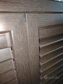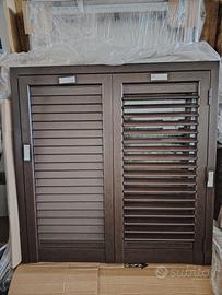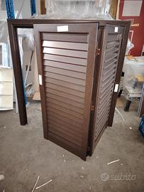 1 persiana apertura a pacchetto colore morice Misure altezza 1290 x 1230 larghezza Telaio a z , spessore telaio 4,5 cm.. Aletta persiana 4 cm.. Apertura spingere a sinistra