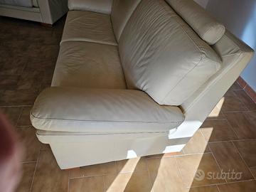 Divani in pelle beige in buone condizioni solo alcune screpolature date dall'usura, comprendono: 1 divano da 3 posti non è divano letto, 2 divani singoli. Le dimensioni sono: