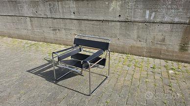 Vendo 1 poltrona Wassily in cuoio nero, ispirata al celebre design di Marcel Breuer.