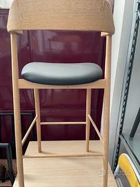 1 Sgabello stile scandinavo, altezza 80cm alla seduta in rovere massello grezzo, sedile in ecopelle nera, nuovo