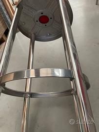 1 Sgabello prodotto dalla Softline realizzato con struttura in alluminio estruso e sottoseduta e poggiapiede in alluminio pressofuso finitura alluminio spazzolato lucido, sedile in poliuretano colore rosso, nuovo disponibile presso il nostro showroom a Montebelluna Treviso
