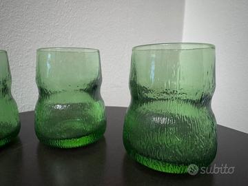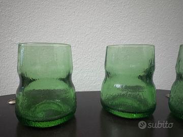 Bicchieri vintage, ideali per amari e grappe o per il caffè. Bel colore verde, di forma irregolare. Mai usati, in ottime condizioni. 6 pezzi.