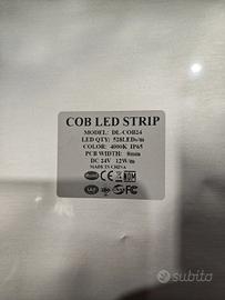 Striscia led tipo COB, dimmerabile, marca Delikay. Numero di led 528 LED/m 24V 12W/m, power factor 0.9, luce naturale 4000k. Angolo di luce di 180° con un CRI >90 per una resa cromatica naturale e precisa.. Adatta ad uso esterno grazie al rivestimento in silicone trasparente con grado IP65. Altamente flessibile, con biadesivo 3M per un fissaggio stabile e duraturo. Dimensioni: PCB 8 mm, larghezza 10 mm e spessore ca 5 mm compreso la protezione di silicone. Lunghezza 10 m. Grazie alla tecnologia a taglio libero (free cut) non ci sono limiti nel taglio: questo consente facilità di installazione. Cablata da ambo i lati con doppino perfettamente sigillato. Alimentabile anche da un solo lato previo isolamento lato opposto, per max potenza e luminosità alimentare ambo i lati. Per eventuali giunzioni e angoli bisogna utilizzare appositi connettori IP65 facilmente reperibili; eventualmente ne ho alcuni disponibili: - Angoli 90° - Dritti per giunte - Tappi di terminazione - Connettori con cavo Bobine esclusivamente da 10 m, vengono vendute con test funzionale e verifica metratura documentato con foto. Disponibili 6 bobine impacchettate singolarmente in busta antistatica. Disponibile per ulteriori informazioni. Ritiro disponibile in zona