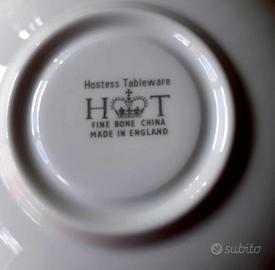 10 Piattini hostess tableware fine bone china made england, con rifiniture dorate, per la decorazione della tavola ,dei muri,sopramobili. vintage.