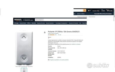 Pulsanti nuovi Gewiss Gw 20521 bianchi , serie System . Vengono di solito utilizzati per comandare il motore che alza e abbassa le tapparelle elettriche . Allo stesso modo vengono impiegati per azionare la salita e la discesa delle tende da sole poste sui balconi e tutte le volte che serve fare una inversione di marcia su un motore elettrico monofase , predisposto .