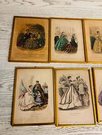 10 stampe moda antiche XIX secolo cornice originale