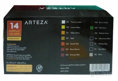 106 COLORI ACRYLIC “ARTEZA PREMIUM” 14 tubetti da 120ml dimensioni scatola cm.33x9x17h.