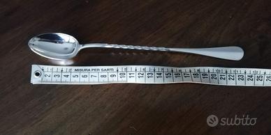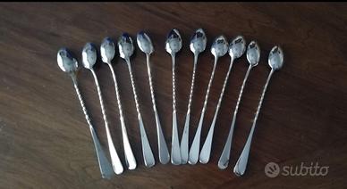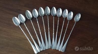 11 originalissimi cucchiai da cocktail in alpacca o argentone, dei primi del '900, con manico twist, in ottime condizioni.
