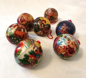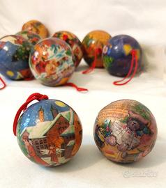 11 palline di natale realizzate con carte vintage di varie misure: 7 palle grandi 2 palle medie 1 campana 1 cubo