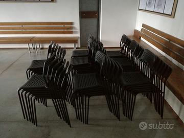 11 Tavoli artigianali impilabili in legno color noce 330€ 45 Sedie impilabili, 315€
