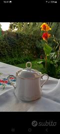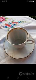 12 tazze piattini con teiera lattiera e zuccheriera ceramica Bavaria bianco bordi oro, mai usato, ritiro a domicilio in provincia Bergamo