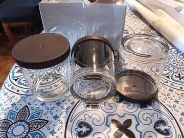 12 Bicchieri/Vasetti in vetro con coperchio in plastica, anche x Cocktail, si possono usare con coperchio facendo un foro x cannuccia oppure senza coperchio, oppure ideali x molti altri usi, comprati pieni, consumato l'interno e lavati, in ottime condizioni, di tutti dodici 9€,. in altri annunci bicchieri/vasetti forme diverse e CANNUCCE,.