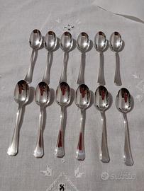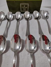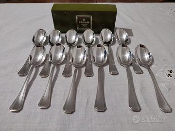 12 cucchiaini in argento Christofle in confezione originale, 370 g. Lunghezza 13,5 cm. Modello America , raro ed esclusivo, anni 60