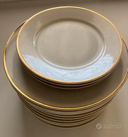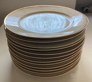 Diametro 24,5 cm, condizioni come foto con un piatto leggermente sbeccato. Regalo anche tre piattini piccoli e due fondine della stessa serie.