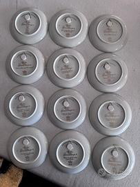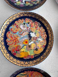 Serie di piatti disegnati da Bjoørne Wiinblad per la storica fabbrica di porcellane Rosenthal, in Germania. La serie è stata prodotta nel 1976 e ogni piatto presenta un gancio per essere appeso al muro. Diametro 16cm.