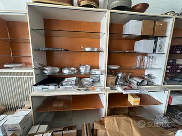 Vendo causa trasferimento sede 12 scaffalature e 1 bancone cassa per negozio, in legno. Usati ma in buon stato di conservazione.