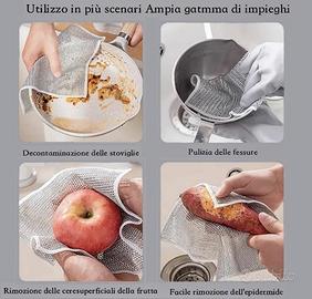 12 Strofinacci Multiuso In Filo D'Acciaio Antigraffio Per La Pulizia Di Stoviglie, Lavelli, Piani Di Lavoro, Piani Cottura, Facili Da Risciacquare, Stracci in Filo D'argento (Due strati)