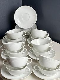Splendido set composto da 12 tazze consommé Richard Ginori modello “Rilievo” complete di 12 piattini abbinati.