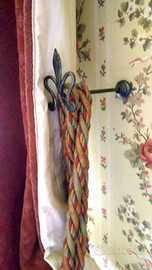 Complete di 12 bastoni in ferro battuto, 12 cordoni reggi tenda e 12 supporto a muro in ferro battuto per singolo cordone.
