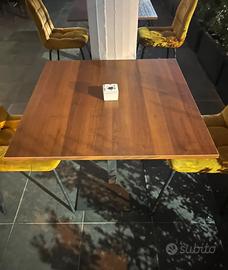Vendo 12 tavoli quadrati con piano in legno color marrone scuro. Sono perfetti per bar, ristoranti o locali pubblici.