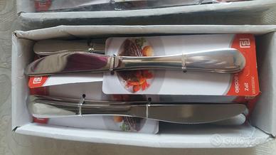 Nuove le 5 confezioni. In ogni scatola ci sono 24 coltelli di ottima qualità di acciaio inox 18/10 Totali 120 coltelli. Chi desidera l’acquisto totale propongo max sconto dal prezzo originale, quindi 120 euro.