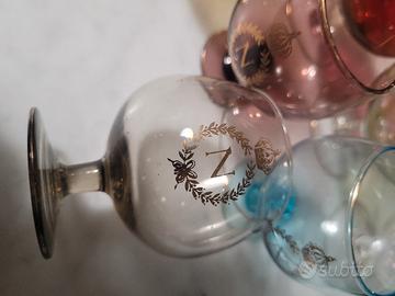 6+6 Bicchieri brendi Napoleone molto rari, monogrammati, multicolore, serigrafia dorata