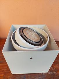 Forma a cubo in acciaio smaltato bianco, lampadine led incluse, luce direzionabile.