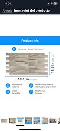 16 pannelli: Materiale e dimensioni: 98 cm x 48 cm = 0,47 mq. Realizzato in PVC di alta qualità, sottile e leggero, ma robusto e resistente e impermeabile.