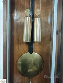 Meccanica a pesi sostenuti da cordini in budello e carrucole in bronzo.