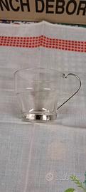 bicchiere in vetro manico in acciaio per disperdere il calore e non scottarsi