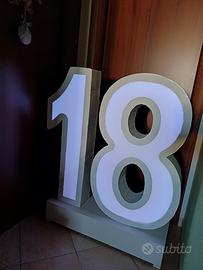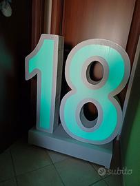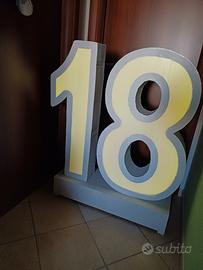 vendo 18 altezza 115 cm realizzato il robusto cartone verniciato e base in legno, luminoso a led con svariati colori e giochi di luce. con batteria interna ricaricabile col suo apposito cavo e telecomando. peso circa 5 kg realizzato per 18esimi usato per una sola serata.