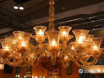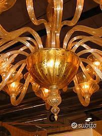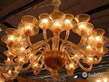 1930 Lampadario Venini 24 luci spruzzato foglia oro. Altezza cm 150 larghezza cm 130 . Euro 30.000