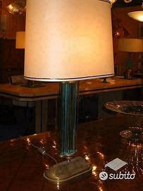 Lampada singola con base ovale di ottone, anni '50. Paralume in pergamena. H. cm 50; h. tot. Con paralume cm 80. Euro 1800. RARA. Fontana Arte