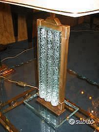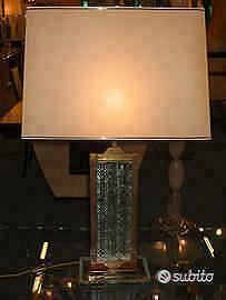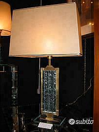 1950 Lampada Fontana Arte vetro martellato 1950 Lampada da tavolo Fontana Arte in cristallo martellato e profilo ottone, paralume in pergamena. Altezza cm 80 circa con paralume, larghezza cm 33. RARA. Euro 5000