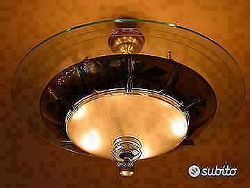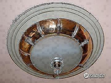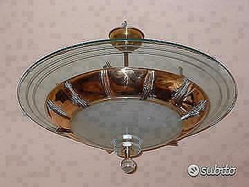 1950 Plafoniera di Fontana Arte ottone nichelato e satinato di cristallo con incisioni. Diametro cm 80 . Grandi dimensioni. RARA. Euro 3500